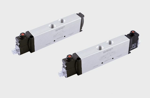 El accionamiento manual auxiliar también está integrado. Las válvulas están disponibles con retorno por muelle neumático 5/2 monoestable o biestable, 5/3 monoestable o 5/4 (doble 3/2 monoestable). La presión máxima de funcionamiento es de 7 bar. Las válvulas pueden montarse en panel mediante dos orificios de fijación integrados en el cuerpo de aluminio.